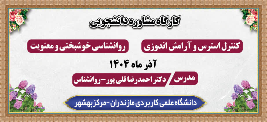 کارگاه مشاوره دانشجویی با موضوع کنترل استرس و آرامش اندوزی - روانشناسی خوشبختی و معنویت … ادامه